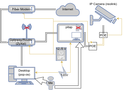 At this time with the current wiring, the reolink appears unavailable to my network, and the pitap is present on the network on ethernet. For the end result, we expect the pi to no longer appear on ethernet (it will then be on wireless), and we expect the reolink device to return to the network on ethernet with the expected hostname, MAC, and IP address that the gateway is already familiar with.