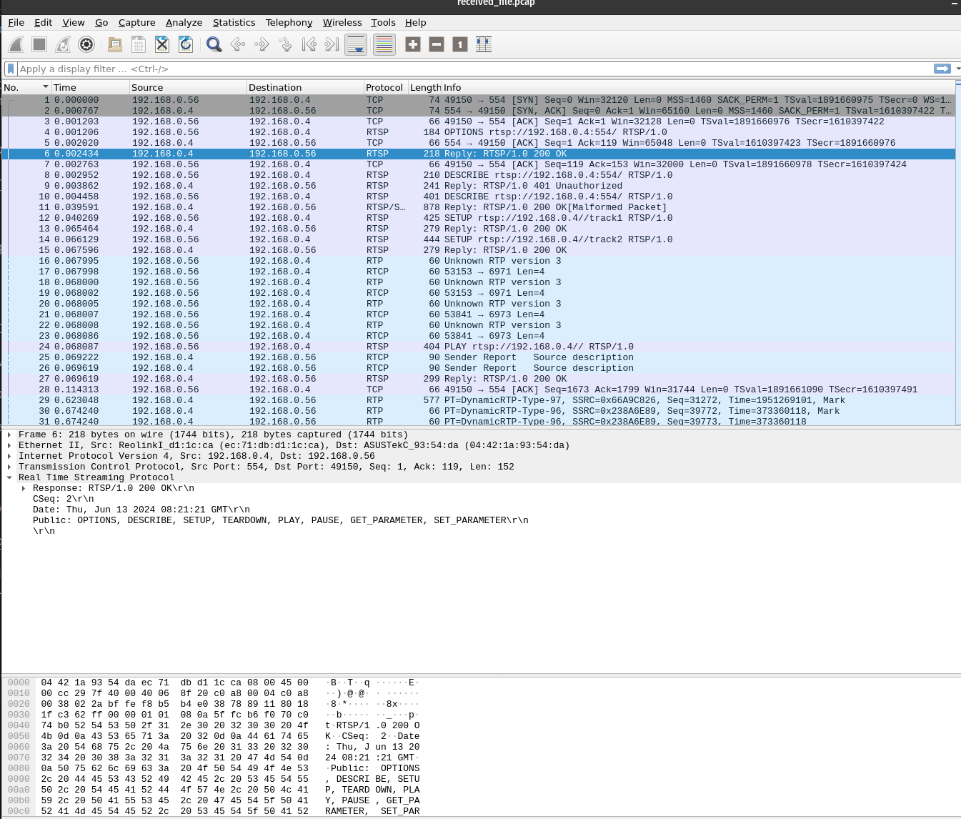End of stream - This looks ok too, we see the teardown of the RTSP stream. It also seems that APR packets from the pitap wireless interface are making their way back to br0